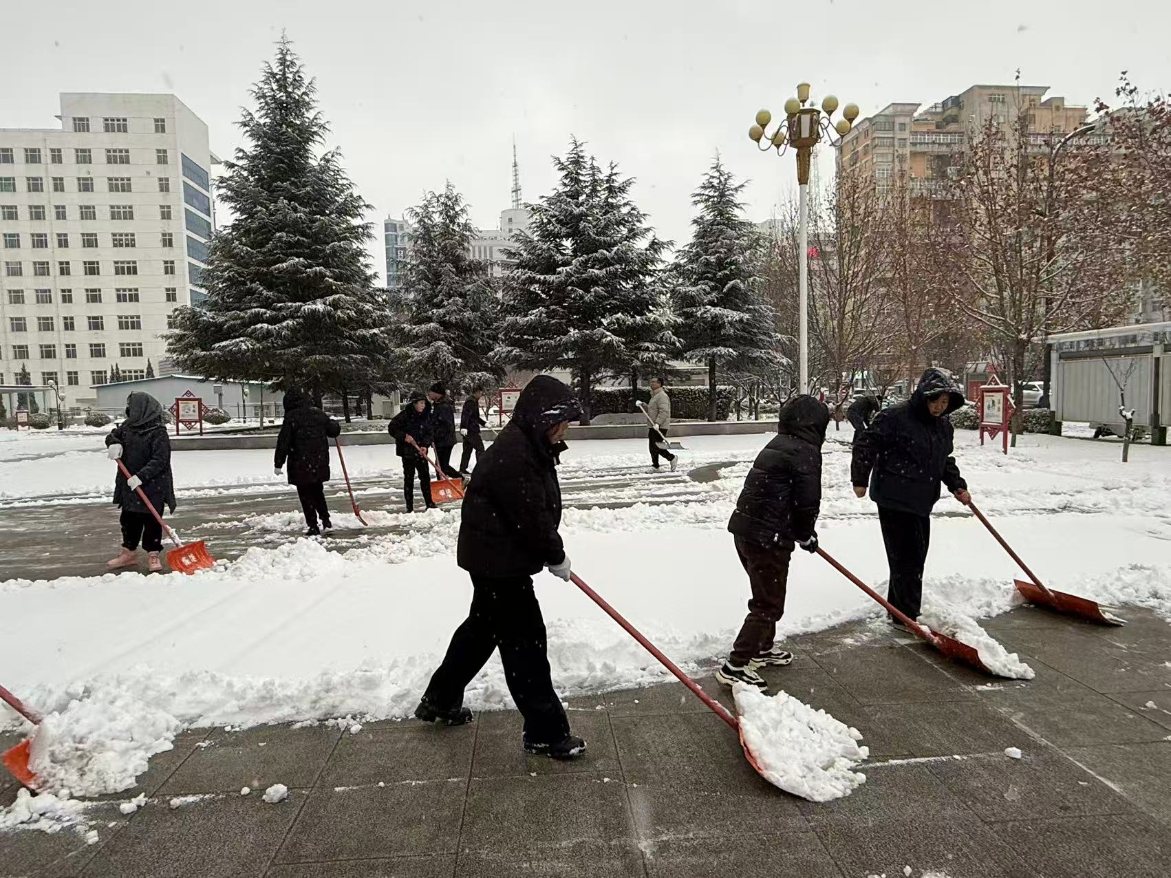 為確保道路暢通無阻,保障市民安全出行,集團公司各基層單位服務點迅速響應,以雪為令、聞雪而動,在市政府、澤州縣政府、市醫(yī)院、市“三館”、富士康園區(qū)、陽城北留鎮(zhèn)、蘭花城、花園水系公園、兩河公園及百潔物業(yè)各服務小區(qū)等區(qū)域,開展清雪除冰專項行動,F場,除雪機械轟鳴作業(yè),干部職工手持鐵鍬、掃帚等工具,分工協作、默契配合,有的操作推雪機開道,有的揮動鐵鍬鏟除堅冰,有的用掃帚清理余雪……寒風凜冽中,處處可見熱火朝天的勞動場景。